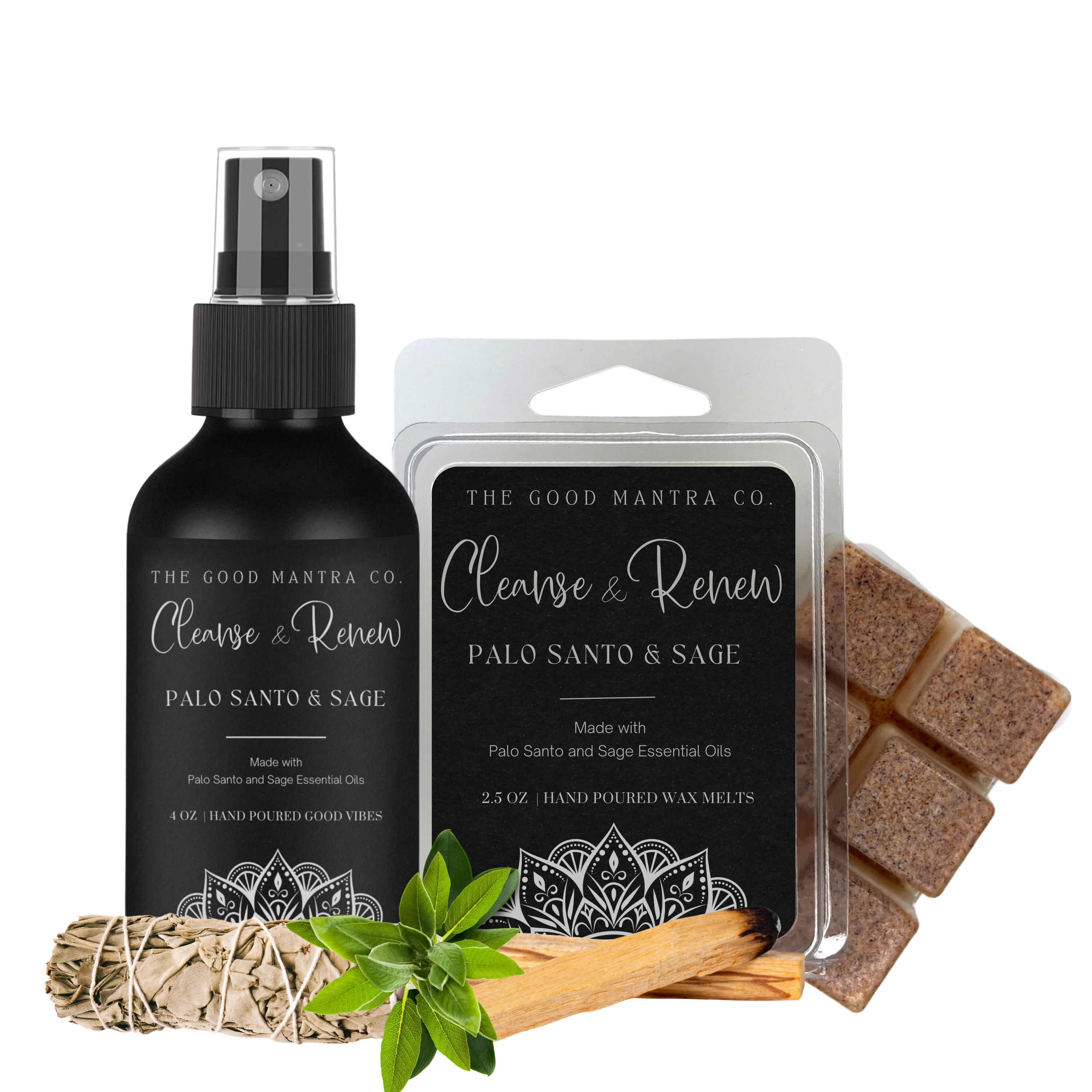 The Cleanse & Renew Smokeless Set features the wax smudge melts and smudge spray, offering two effective ways to reset your space—without smoke or flames. With the cleansing power of Palo Santo and Sage, this set is perfect for energy clearing, emotional grounding, and daily alignment.