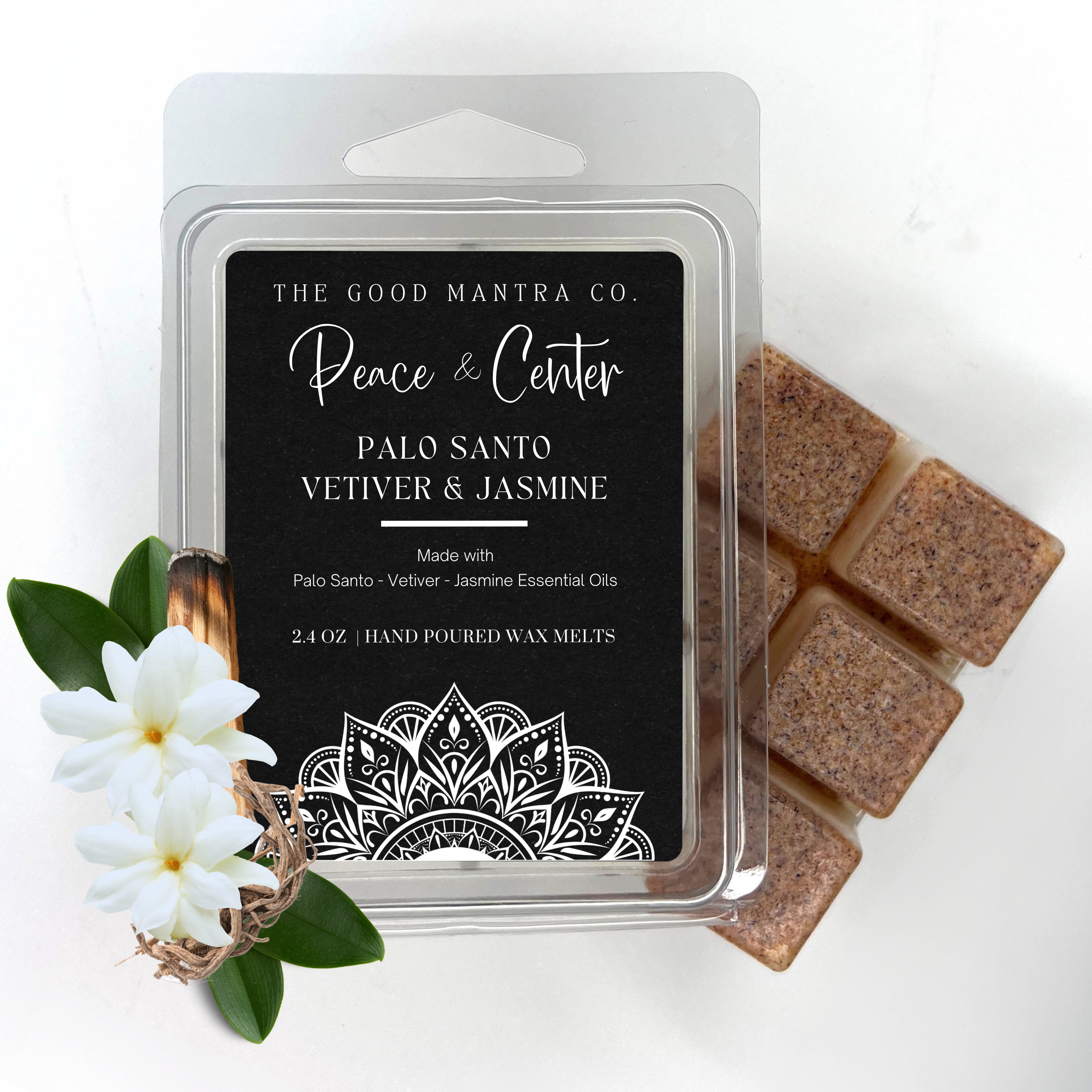 The Peace & Center Wax Smudge Melts are perfect for smoke-free energy cleansing and emotional alignment. Made with Palo Santo, Jasmine, and Vetiver, they help release stress, reset your space, and support your rituals with grounding calm.