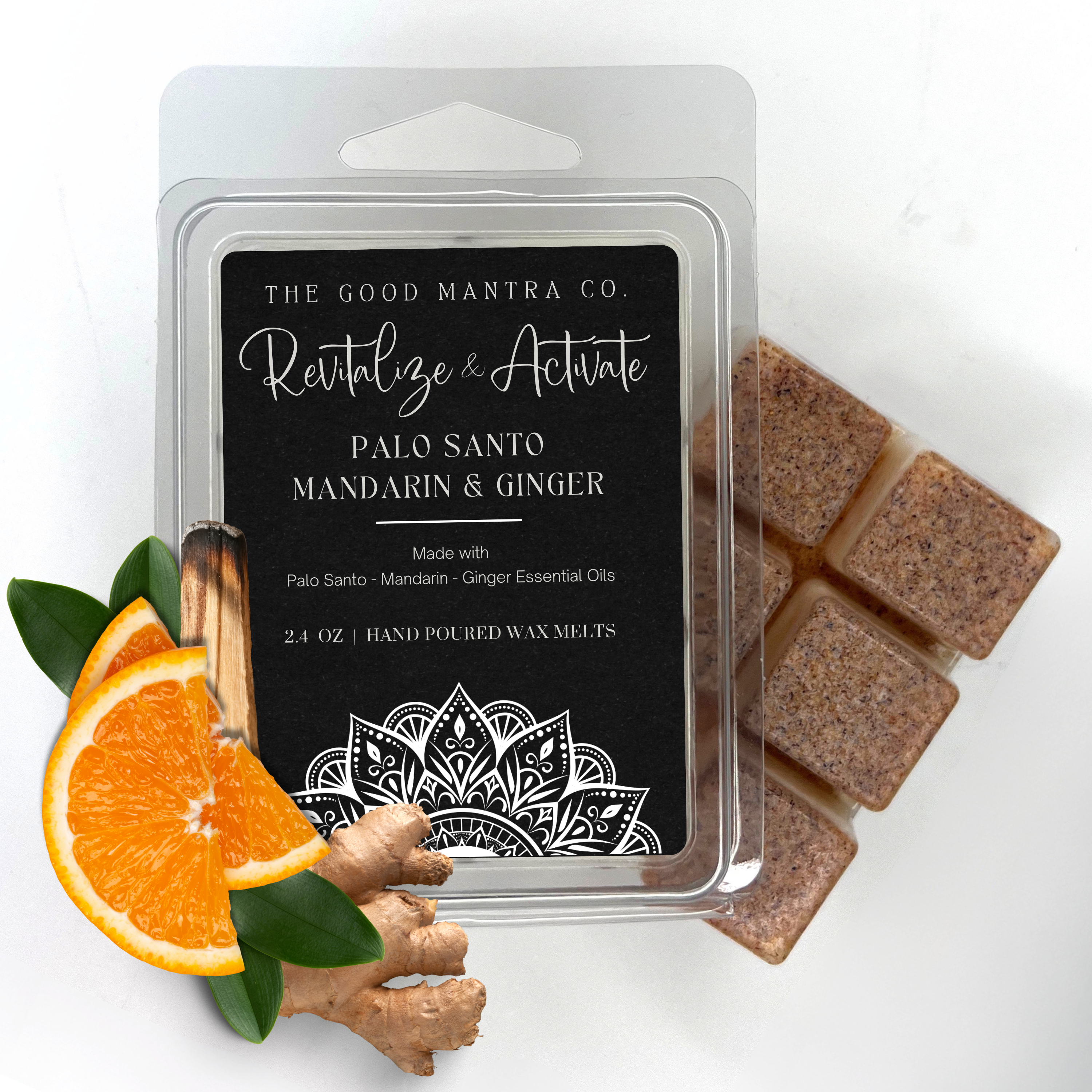The Revitalize & Activate Wax Smudge Melts offer a flame-free way to energize your space and clear mental clutter. Made with Mandarin, Ginger, and Palo Santo, these melts awaken your senses and fuel your focus—ideal for work sessions, creative bursts, or productive mornings.